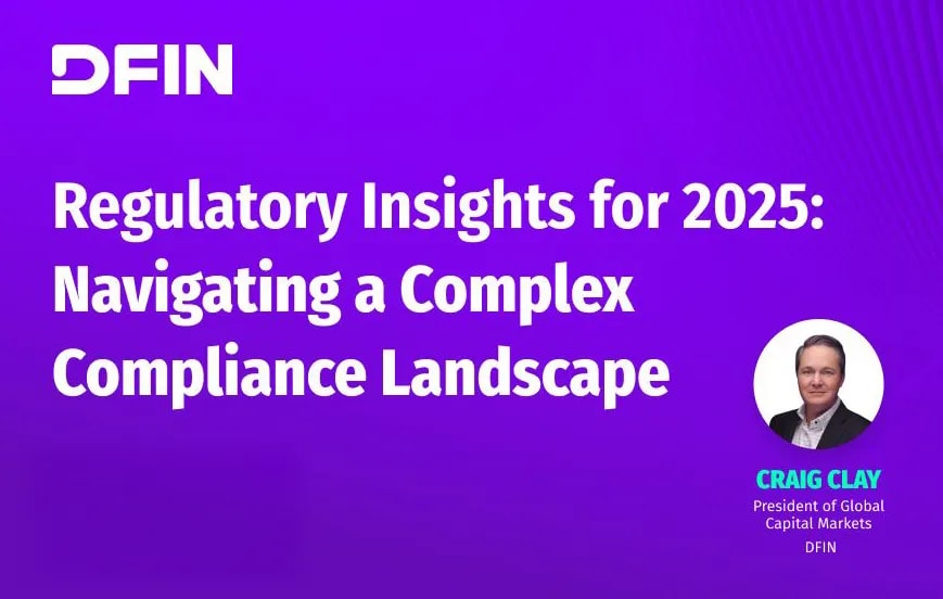 随着新一届美国政府上任和全球监管合规框架的不断发展,2025年的监管环境预期将迎来显著转变,DFIN全球资本市场总裁 Craig Clay近日发布博客文章,解读2025年美国SEC合规趋势,助美股上市企业及早为潜在变化做好准备。