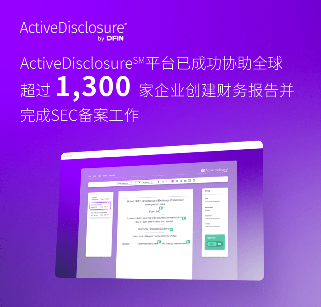 过去一年美国证券交易委员会(SEC)接连推出新规完善监管,为协助企业应对相关披露规则的变化,DFIN于今年发布#美股上市公司SEC合规系列文章,并特别标注了新规之下,在美国上市的外国私人发行人(FPI)在进行财报创建与合规申报时需注意的要点。在前几期文章中我们已就SEC 144股份出售新规、10b5-1新规、网络安全披露新要求等新规内容进行了浅析,本期将探讨DFIN SEC合规解决方案ActiveDisclosure℠如何以专项功能助美股上市公司有效响应新规并确保合规性。
