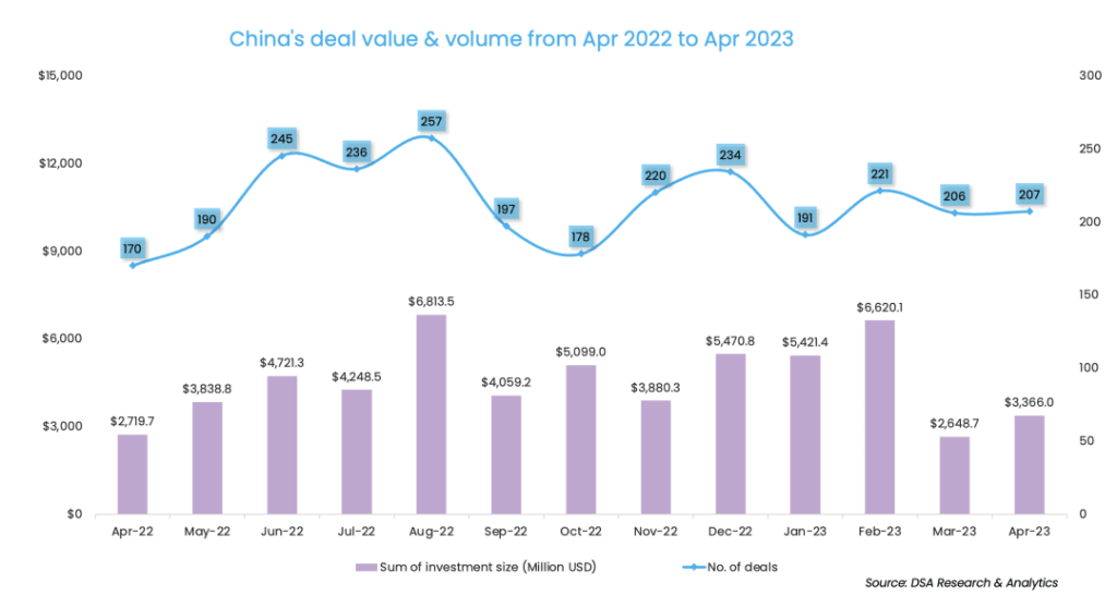 根据DFIN最新发布的《China Deals Barometer Report》报告,4月份中国投融资交易明显回升,投资者在207笔交易中先后向初创企业生态系统注入了约240亿人民币(34亿美元)。