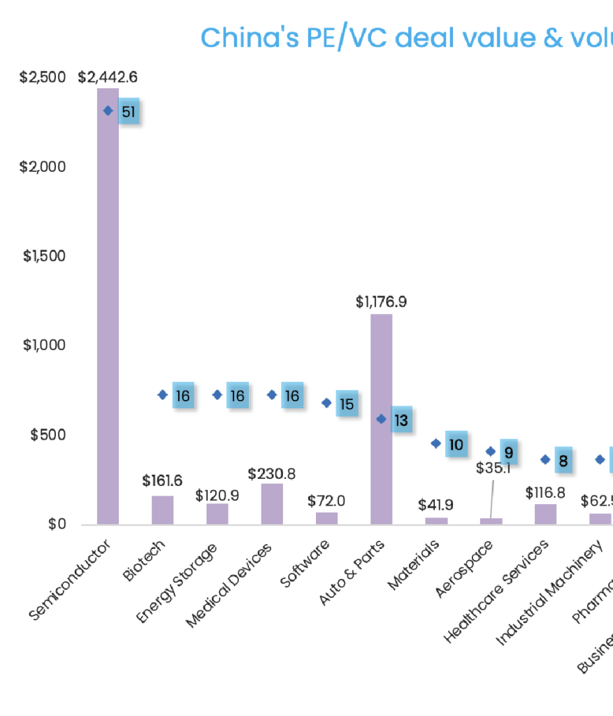 9月份大中华区,最受资本青睐的行业是半导体,其次是生物技术、能源存储和医疗设备。