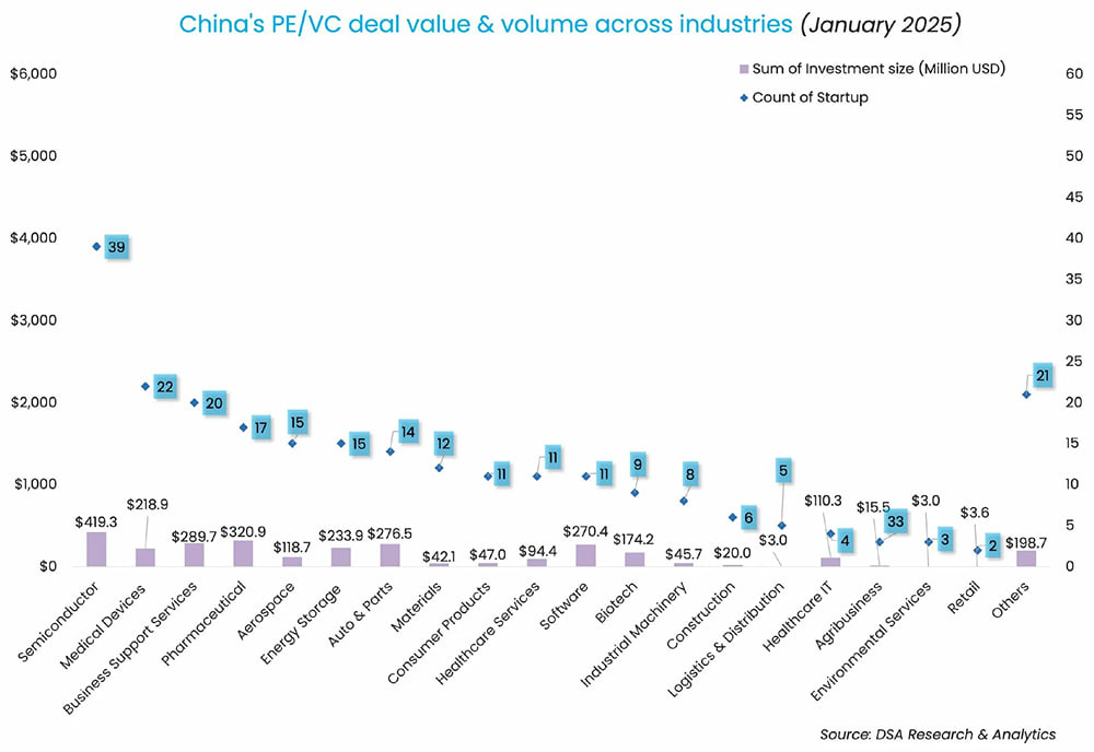 根据DFINDealStreetAsia联合发布的《China Deals Barometer Report》2025年1月份报告,总部位于中国内地、香港、澳门和台湾的私营企业,在新年首月以累计248笔投融资交易和29亿美元交易额完成开局。