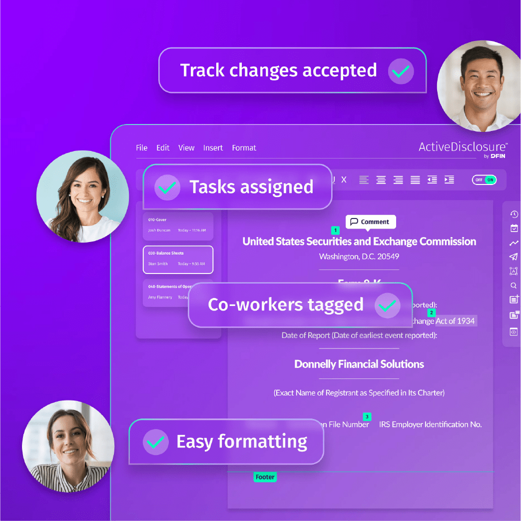 美股一季度财报季高峰期临近,DFIN专为财务报告创建与美国SEC合规备案设计的云端协作工具——ActiveDisclosure℠推出重点新功能,持续赋能速度与智能化,致力帮助美股上市企业实现更高效、更准确且具更高协作性的财报创建体验。
