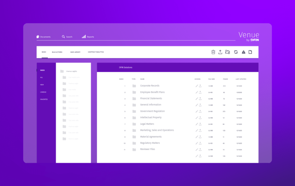 无论是进行高机密性的尽职调查,还是准备 IPO、进行筹资,关键时刻Venue®虚拟数据库助您轻松管理每个项目。