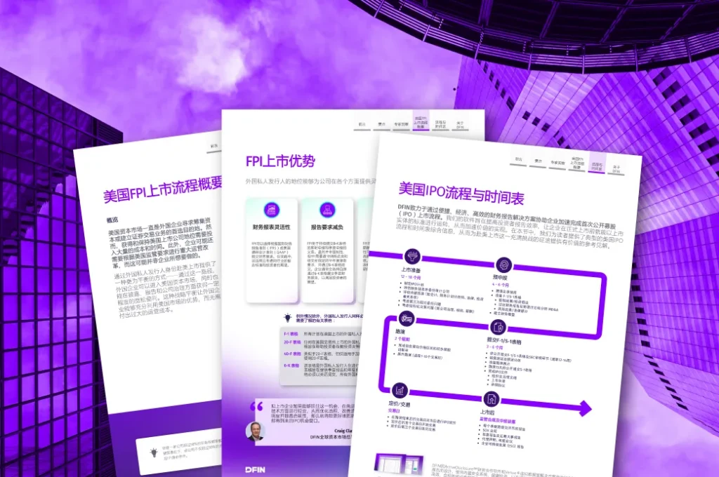当纳利金融服务集团(NYSE: DFIN)近期发布《从私有到上市:2024年外国私人发行人(FPI)美国上市专家洞察》白皮书(A Guide to U.S. IPO & Public Listing for FPIs),旨在为计划于2024年以FPI身份在美国上市的企业提供实用且具前瞻性的见解与指南。