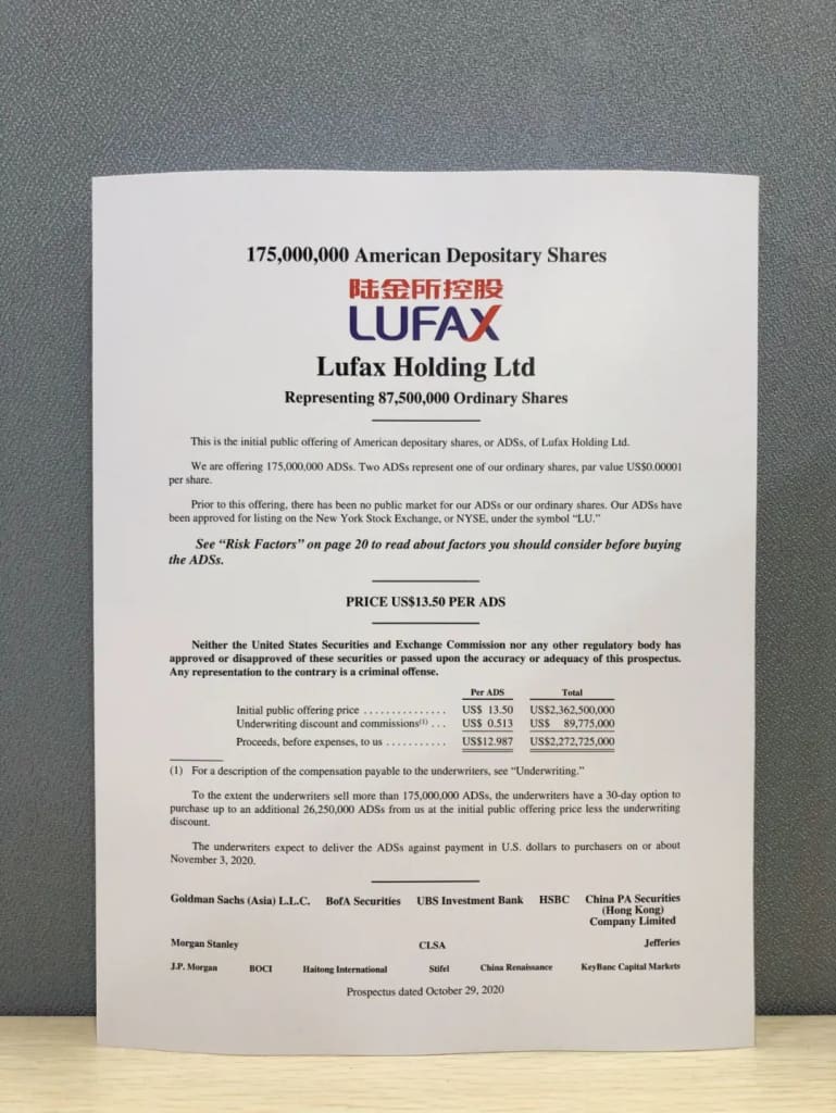 10月30日,陆金所 (Lufax) 在纽约证券交易所 (NYSE) 正式挂牌上市,股票代码为“LU”。