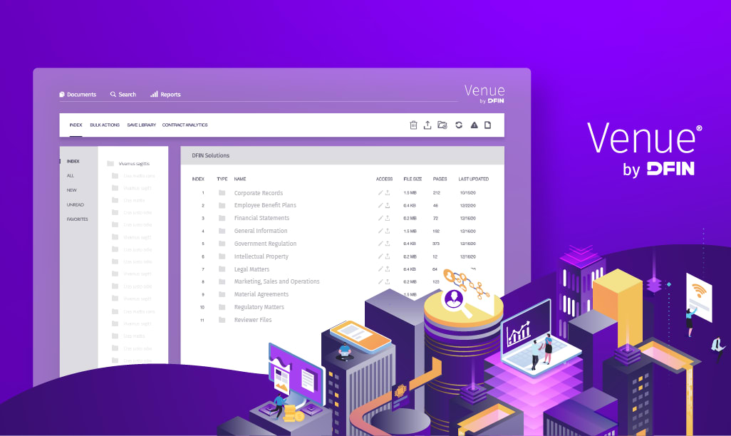 Venue®是由全球领先的风险与合规解决方案公司当纳利金融服务集团(DFIN)专为投融资交易开发的虚拟数据库解决方案。