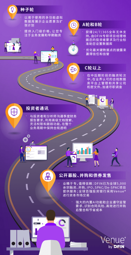 了解Venue®如何在各个 融资阶段助您做好周全准备:
