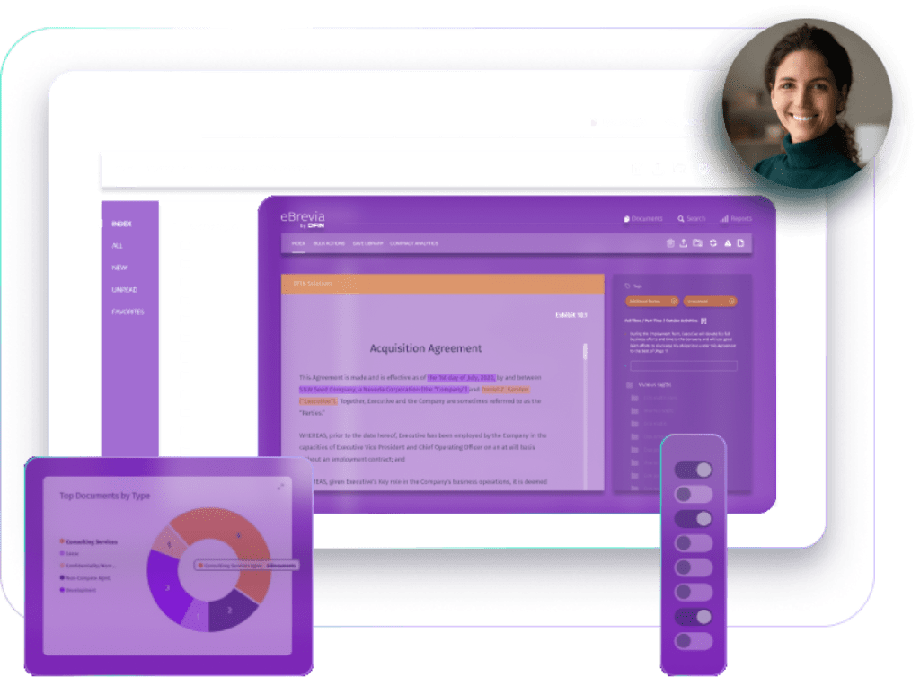 eBrevia能够为您自动分析和审阅数以千计的合同文档,并智能提取关键条款,让您轻松完成80%以上的合同分析工作,在短时间内即可完成合同尽职调查的汇总,从而大幅缩短尽调流程。
